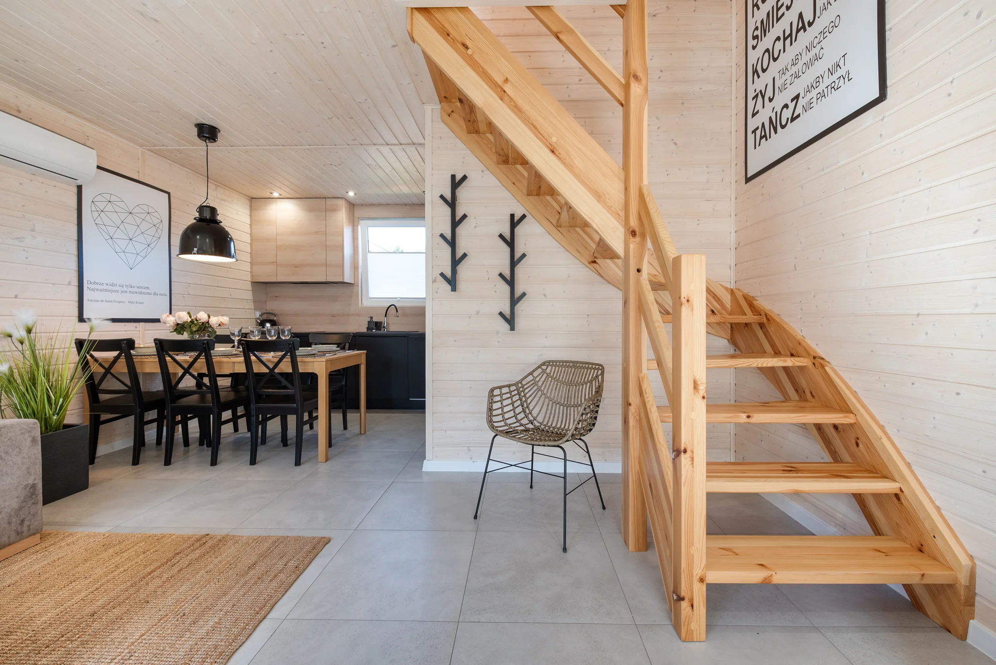 Jednym z największych atutów domków inspirowanych stylem północy jest ich układ, który sprzyja byciu razem. Otwarta przestrzeń dzienna, połączona kuchnia i salon oraz duże okna tworzą miejsce, w którym rodzina może spędzać czas wspólnie, bez względu na to, czy ktoś gotuje, odpoczywa czy bawi się z dziećmi. Taki układ sprzyja naturalnej bliskości i pozwala każdemu czuć się częścią wspólnego rytmu dnia. Wspólne posiłki, rozmowy przy stole, wieczory spędzane na tarasie czy spokojne poranki przy kawie – to właśnie te chwile budują najtrwalsze wakacyjne wspomnienia. Skandynawska estetyka, dzięki swojej prostocie i harmonii, tworzy tło dla takich momentów. Nie narzuca się, nie przyciąga nadmiernie uwagi, lecz pozwala skupić się na relacjach i emocjach.